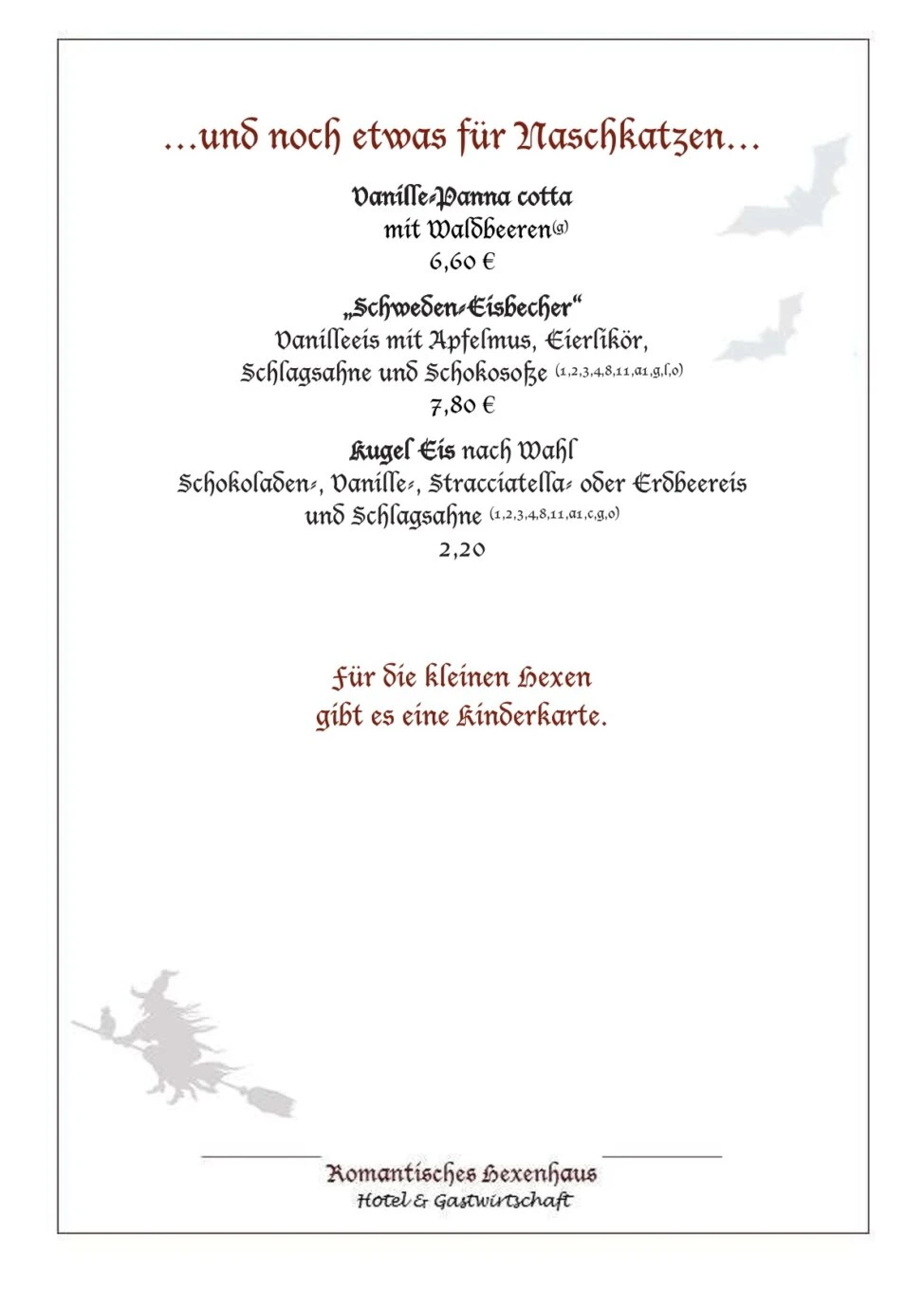 Speisekarte - Restaurant Dresden - Hexenhaus Anno 1802